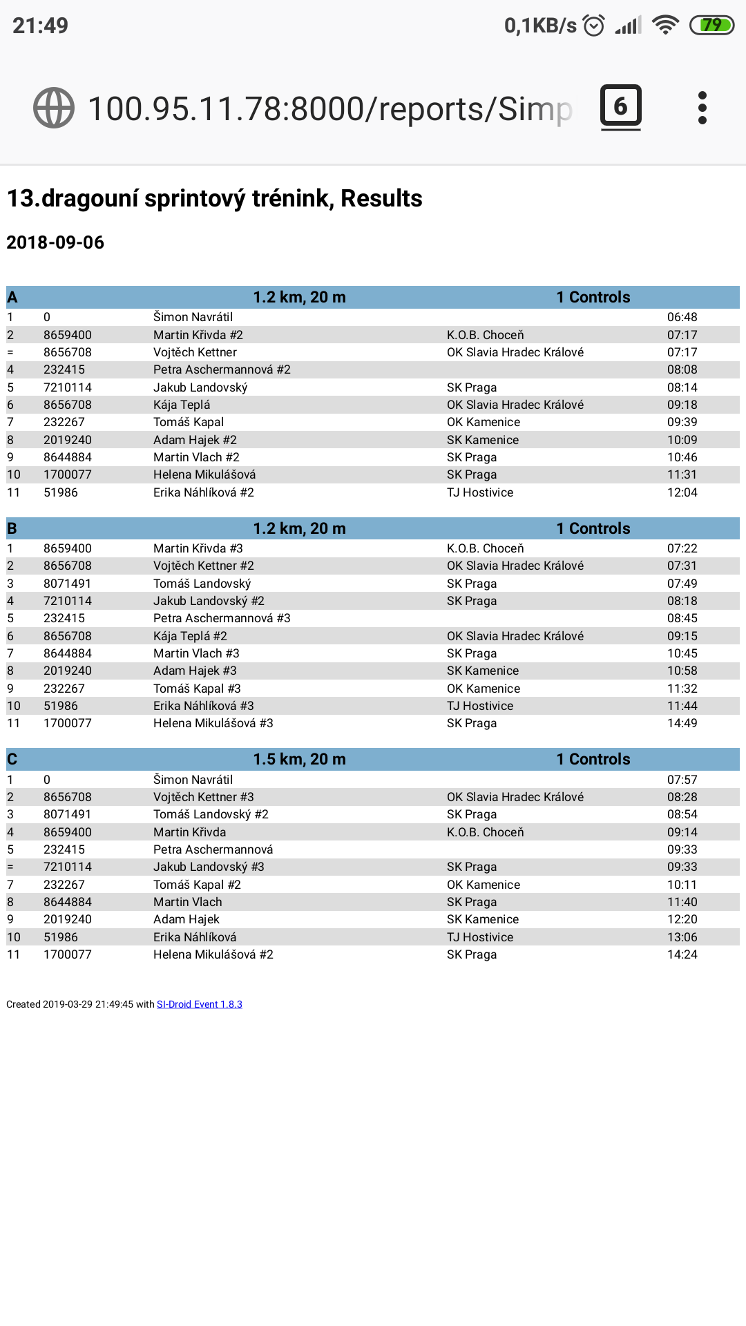 Pomocí mobilní aplikace OFeed SI-Droid Connector je možné výsledky v průběhu akce nahrávat na OFeed či OResults. Návod jak na to je zde.